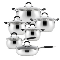 12-teiliges modernes Design Antihaft-Kochgeschirrset aus Edelstahl Metall Bratpfanne Suppen topf Sauce Pfanne und Kochtöpfe & Pfannen
