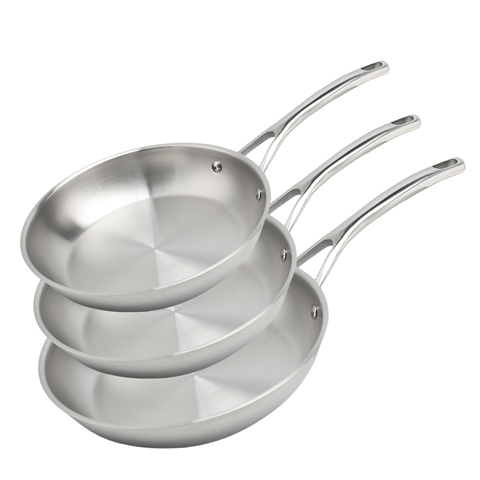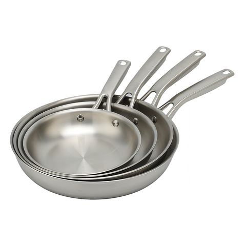 ชุดเครื่องครัวกระทะทอดสแตนเลสแบบทันสมัยขนาด10/12นิ้ว24/28ซม. กระทะเหนี่ยวนำแรงกระแทกด้านล่างไม่มีการเคลือบเตาอบปลอดภัย