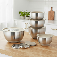 ชามผสมสลัดพร้อมที่ขูดชุดชามผสมทำจากสแตนเลสพร้อมฝาปิด
