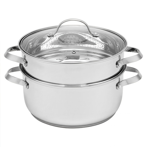 ชุดหม้อนึ่งทำอาหารสแตนเลส24ซม. เครื่องครัวสองชั้นและฝาเป็นมิตรต่อสิ่งแวดล้อม