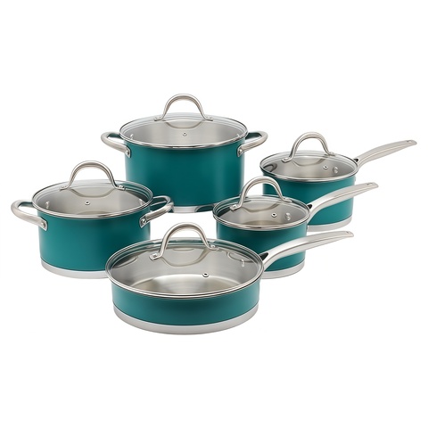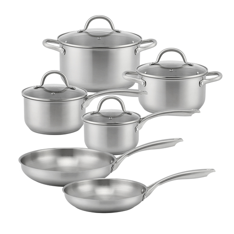 ชุดเครื่องครัวสแตนเลสพร้อมฝาปิดกระจกนิรภัย10ชิ้นดีไซน์ทันสมัยเป็นมิตรกับสิ่งแวดล้อม